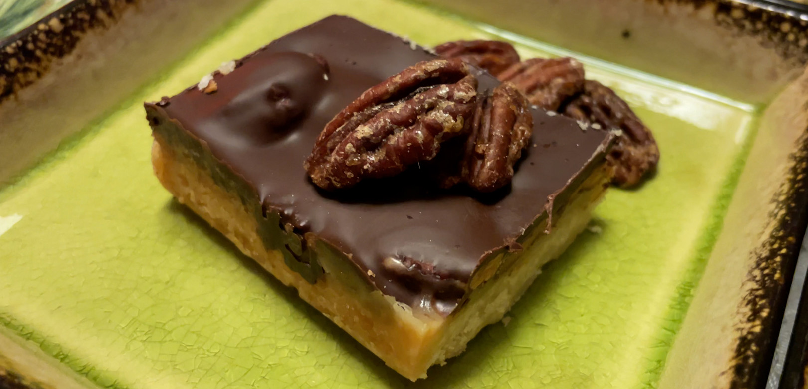 – Make pecans 2-3 days ahead, assemble bars the day before, cut day of.